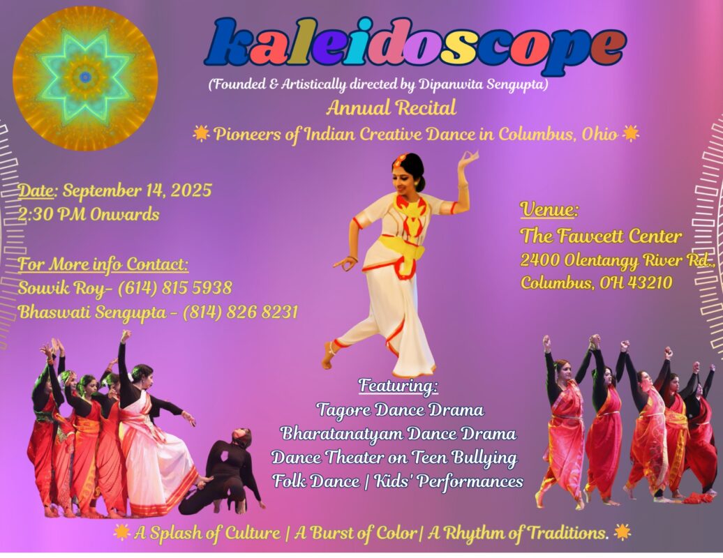 Kaleidoscope Recital 2025 will be held on Sunday, 14th September 2025 at Fawcett Center, 2400 Olentangy River Rd, Columbus, OH 43210.